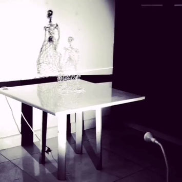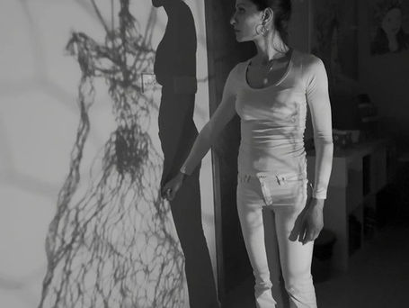 Clara, a 28 cm wired mesh scultpure becomes  a living thing in the studio. Her tiny body is projected into a 172 cm center tall figure who could be interacted with – posed with, share glares with, hold hands with. In those moments, even Elena's children interacted with Clara in a warm and fuzzy way – as if they already knew who she is and what she is about. And they caressed the flat wall as if to try feel her essence. Clara in that moment became profound and important, making her way, setting a path, becoming someone both literally and physically.